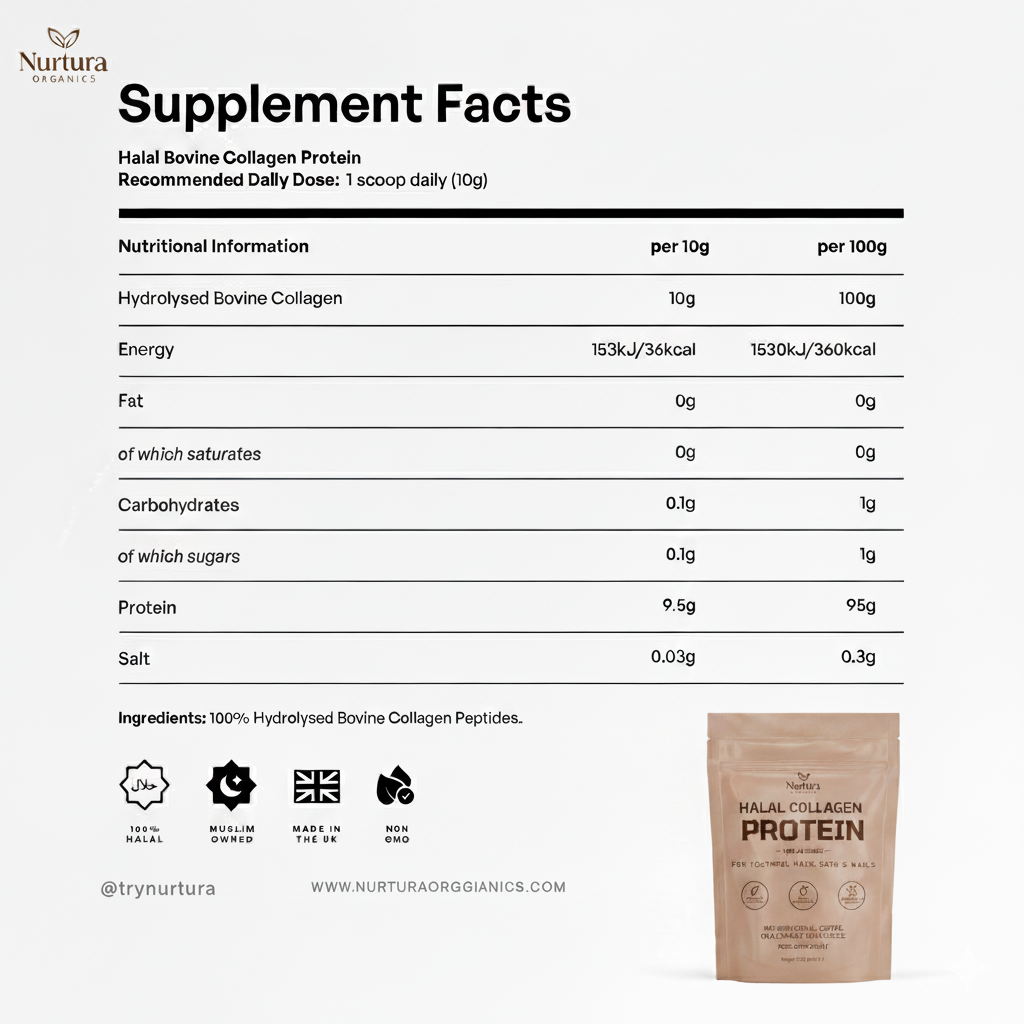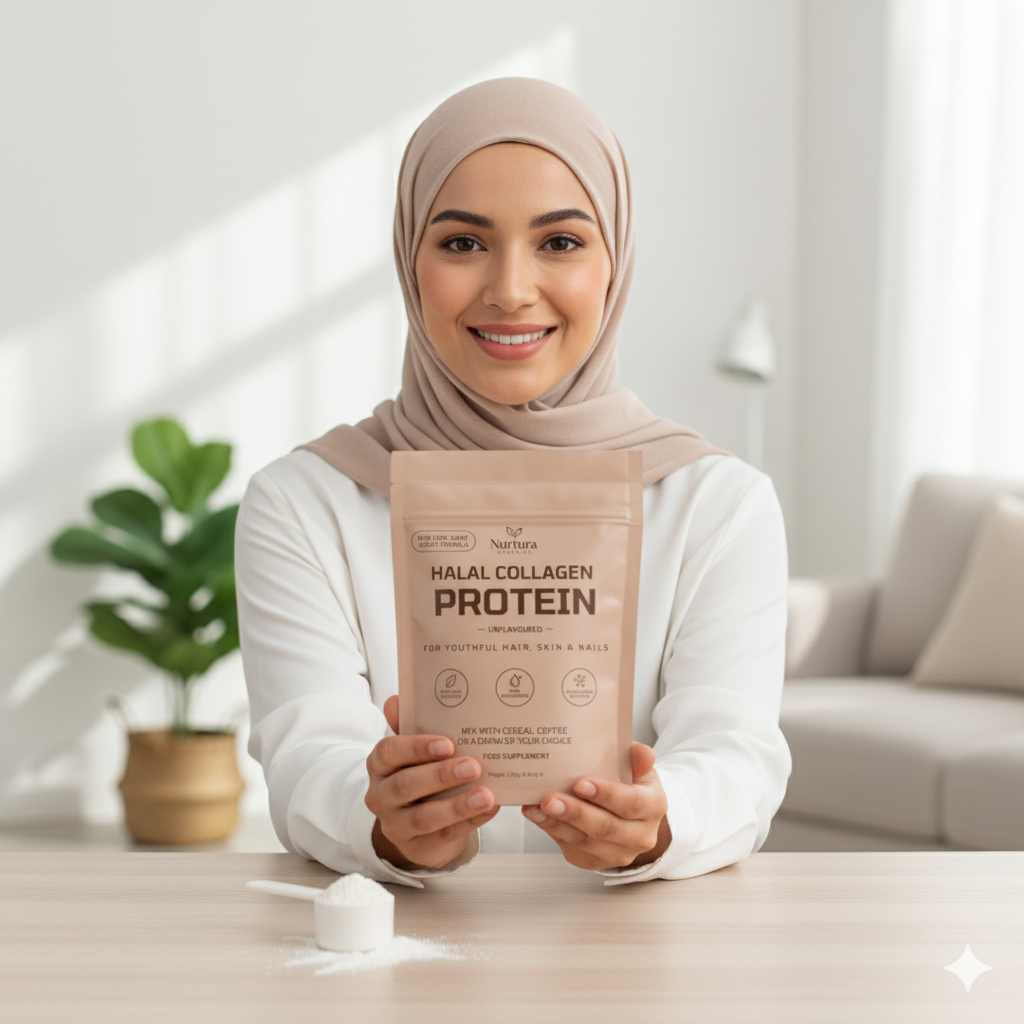 Discover Nurtura Collagen — a pure, ethically sourced collagen powder designed to nourish your skin, hair, nails, and joints from within. Formulated with Type I & III collagen peptides, it supports youthful radiance, strength, and mobility for anyone seeking clean, halal-certified daily wellness.