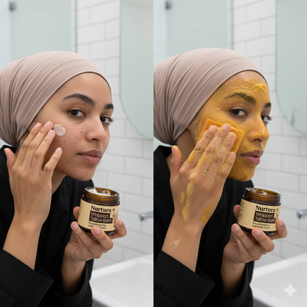 Dark spots don’t fade if your barrier is weak. Our Halal Tallow Balm restores essential lipids, strengthens skin, and calms inflammation—creating the foundation for Kojic + Turmeric to naturally fade discoloration, leaving skin clearer, healthier, and radiant.